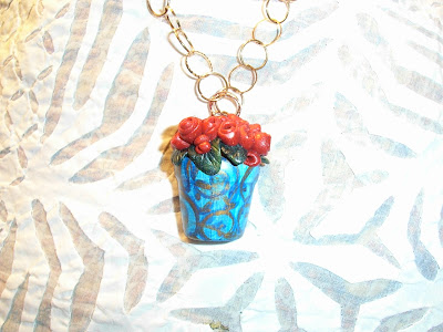 I vasetti sono in pasta sintetica ovviamente fatti da me e dopo la cottura li ho dipinti con colori acrilici.